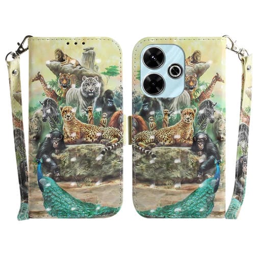 Para Xiaomi Redmi 13 4G Funda para Teléfono de Cuero con Tapa Horizontal de Color 3D (Zoo)