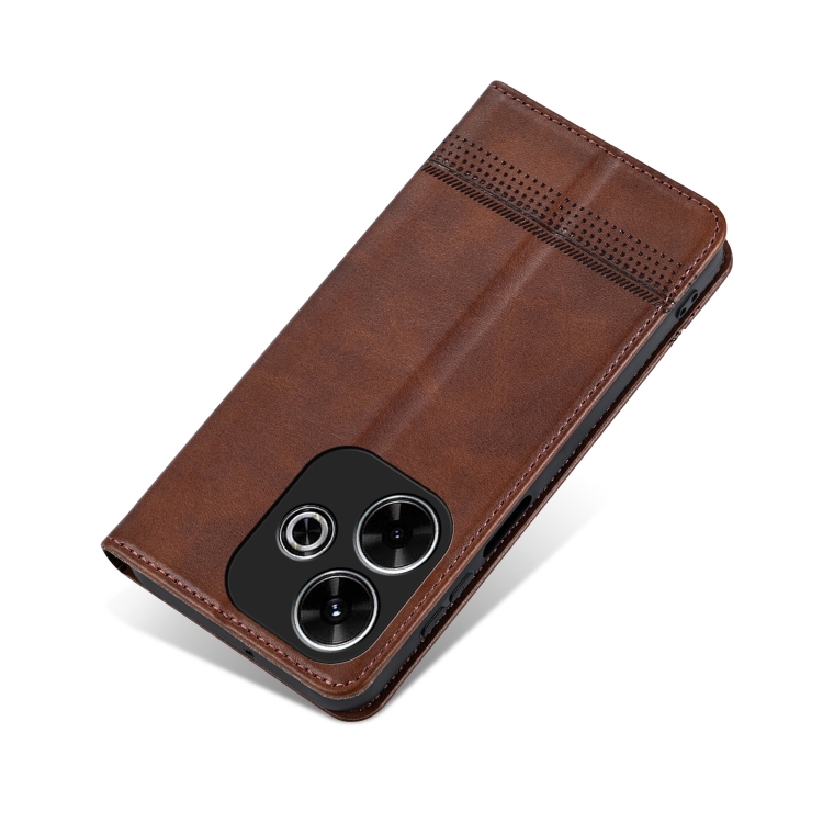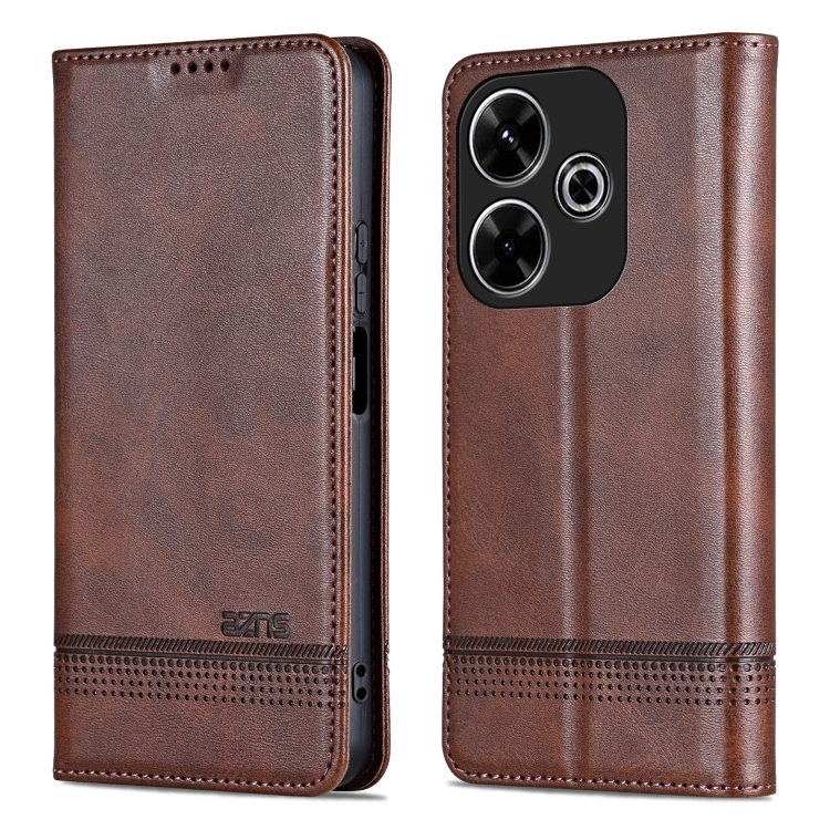 Para Xiaomi Redmi 13 4G Global Azns Funda para Teléfono con Tapa de Cuero con Textura de Pantorrilla Magnética (Marrón Oscuro)
