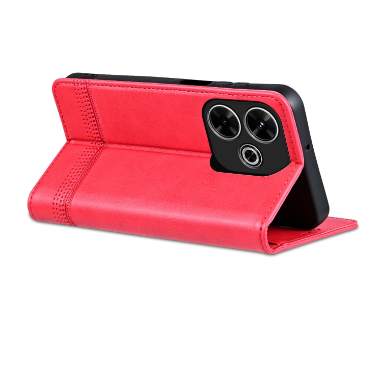 Para Xiaomi Redmi 13 4G Global Azns Funda para Teléfono de Cuero con Tapa con Textura de Pantorrilla Magnética (Rojo)