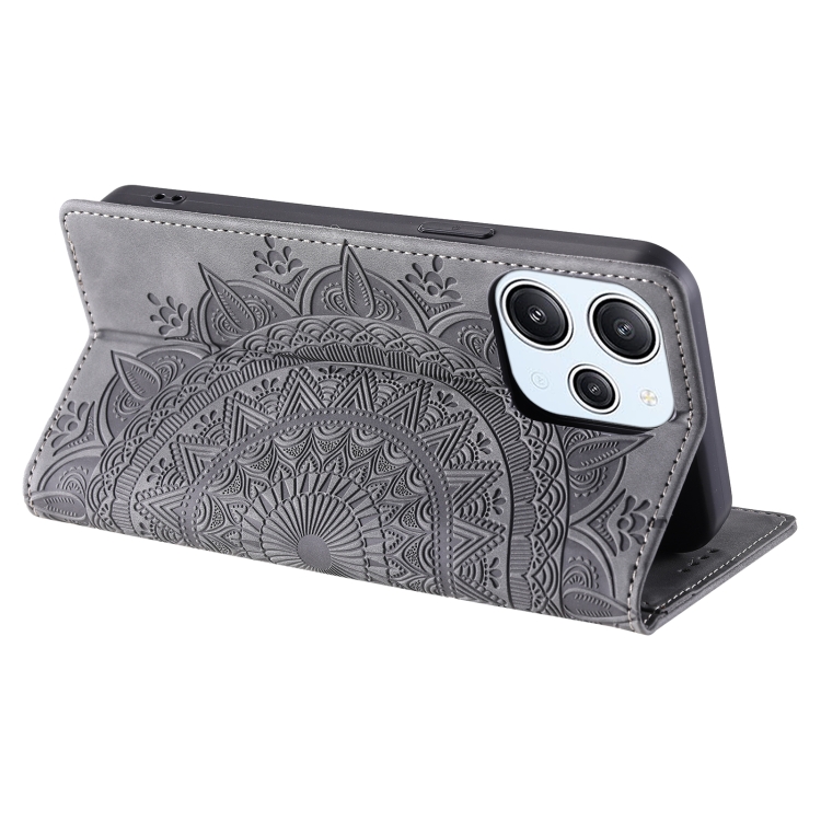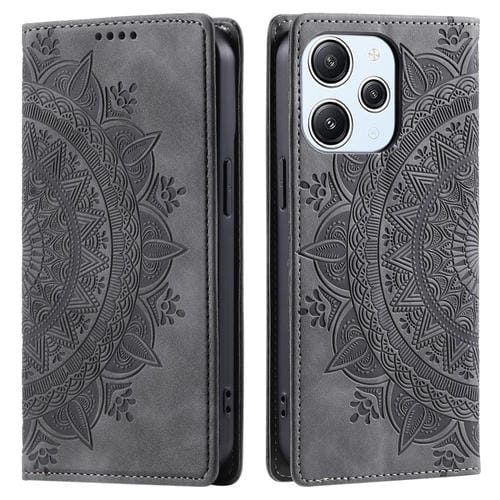 Para Xiaomi Redmi 13 4G Totem Funda de Cuero Magnética En Relieve para Teléfono (Gris)