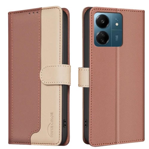Para Xiaomi Redmi 13C Funda de Teléfono de Cuero Antirrobo Rfid a Juego de Colores (Marrón)