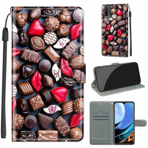 Para Xiaomi Redmi 9 Potencia / Note 9 4G Tensión de Color Dibujo Magnético Cierre Magnético Flip Pu Funda de Cuero con Soporte y Ranuras para Tarjetas (C06 Red Lip Chocolate)