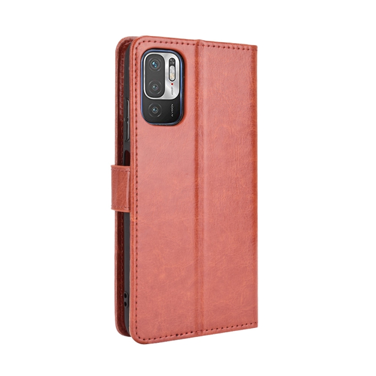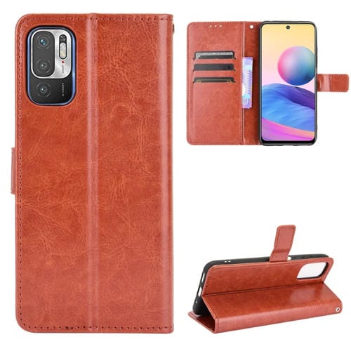 Para Xiaomi Redmi Note 10 5G Crazy Horse Texture Horizontal Flip Funda de Cuero con Soporte y Ranuras para Tarjetas y Cordón (Marrón)