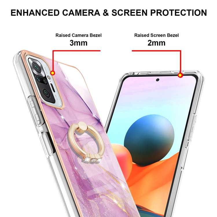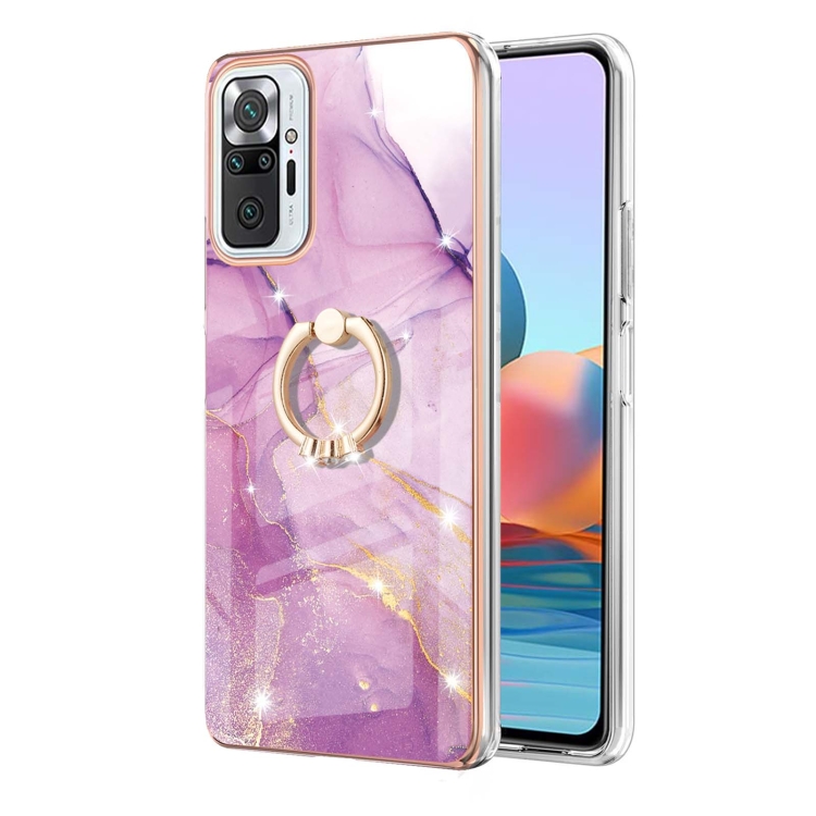Para Xiaomi Redmi Note 10 Pro / Note 10 Pro Max Materplating Pattel Marle Materle Imd TPU Funda a Prueba de Golpes con Soporte de Anillo (Púrpura 001)