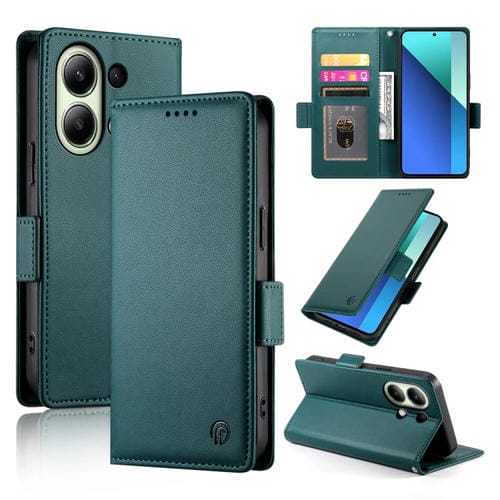 Para Xiaomi Redmi Note 13 4G Funda para Teléfono de Cuero Esmerilado Magnético con Hebilla Lateral (Verde Oscuro)
