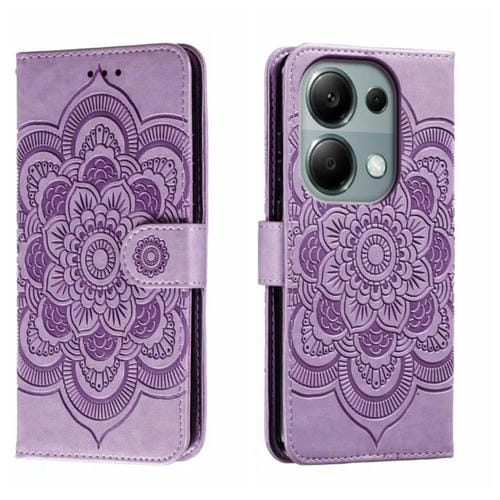 Para Xiaomi Redmi Note 13 Pro 4G Sun Mandala Funda de Cuero para Teléfono con Patrón En Relieve (Púrpura)