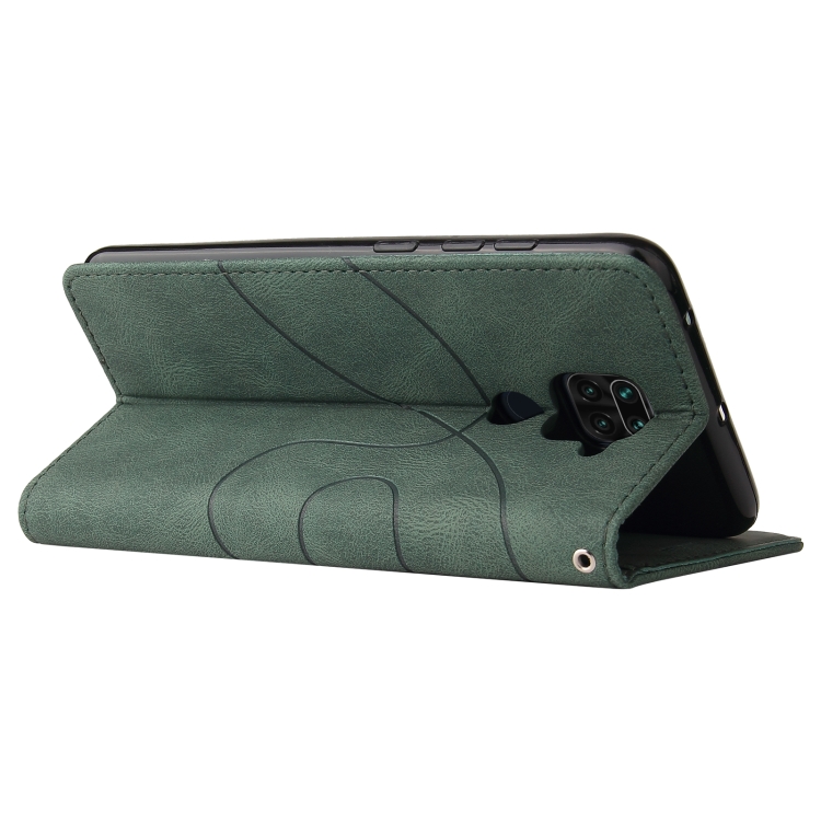 Para Xiaomi Redmi Note 9 Empalme de Doble Color Funda de Cuero Horizontal Flip Pu con Soporte y Tragamonedas y Billetera (Verde)