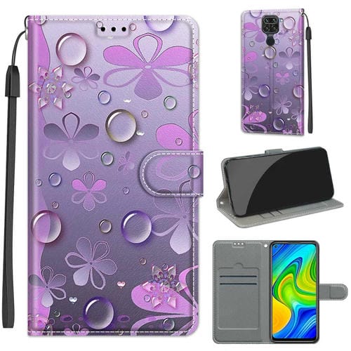 Para Xiaomi Redmi Note 9 / Redmi 10X 4G Dibujo de Color Dibujo Magnético Cierre Magnético Flip Pu Funda de Cuero con Soporte y Ranuras de Tarjetas (C16 Gota de Agua Seis Petal Flower)