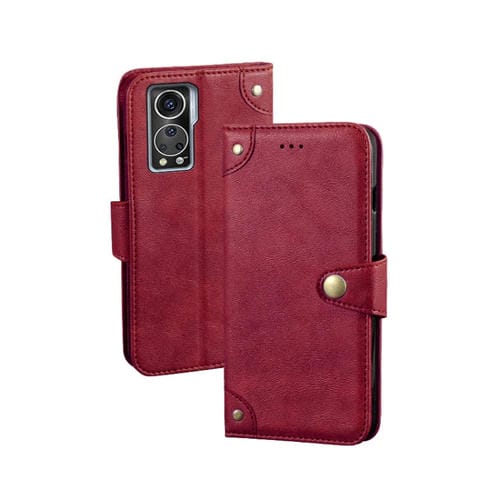 Funda de Cuero para ZTE Axon 30S Idewei con Textura Retro (Rojo)