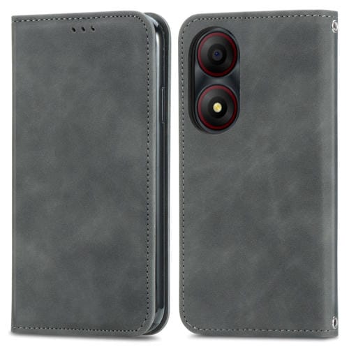Funda de Cuero con Tapa Magnética para ZTE Blade A34 Retro Skin Feel (Gris)