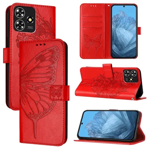 Funda de Cuero para ZTE Blade A73 4G con Mariposa en Relieve (Rojo)