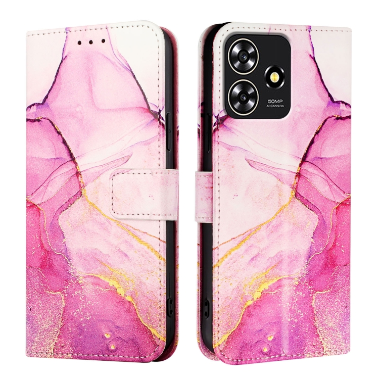 Funda de Cuero con Tapa para ZTE Blade A73 4G Pt003 con Patrón de Mármol (Rosa, Morado y Dorado)
