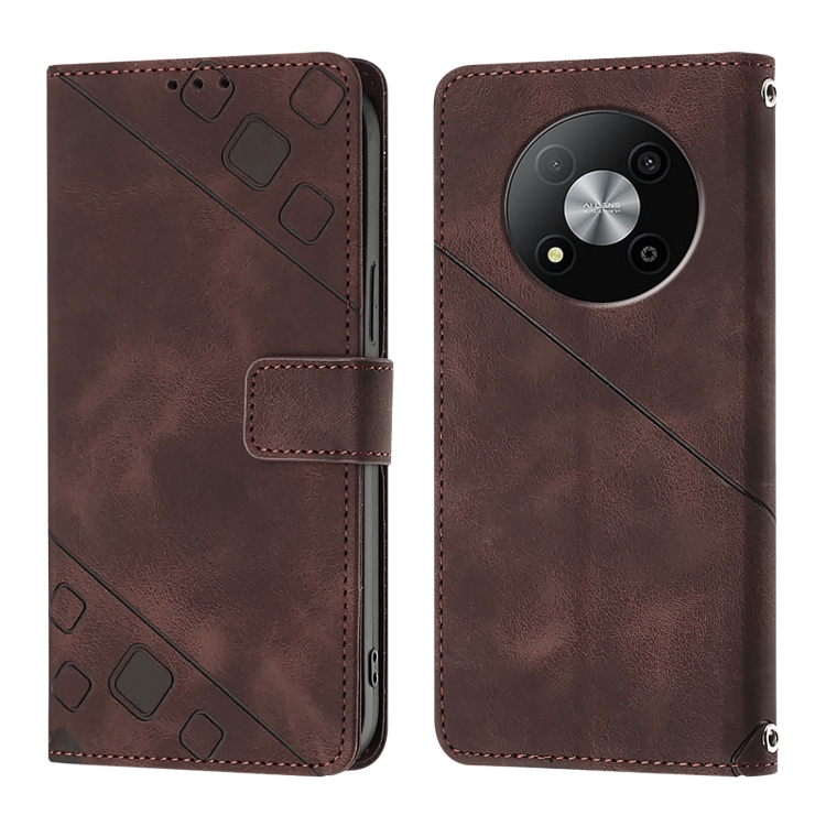 Funda de Cuero Skin Feel para ZTE Blade A73 5G en Relieve (Marrón)