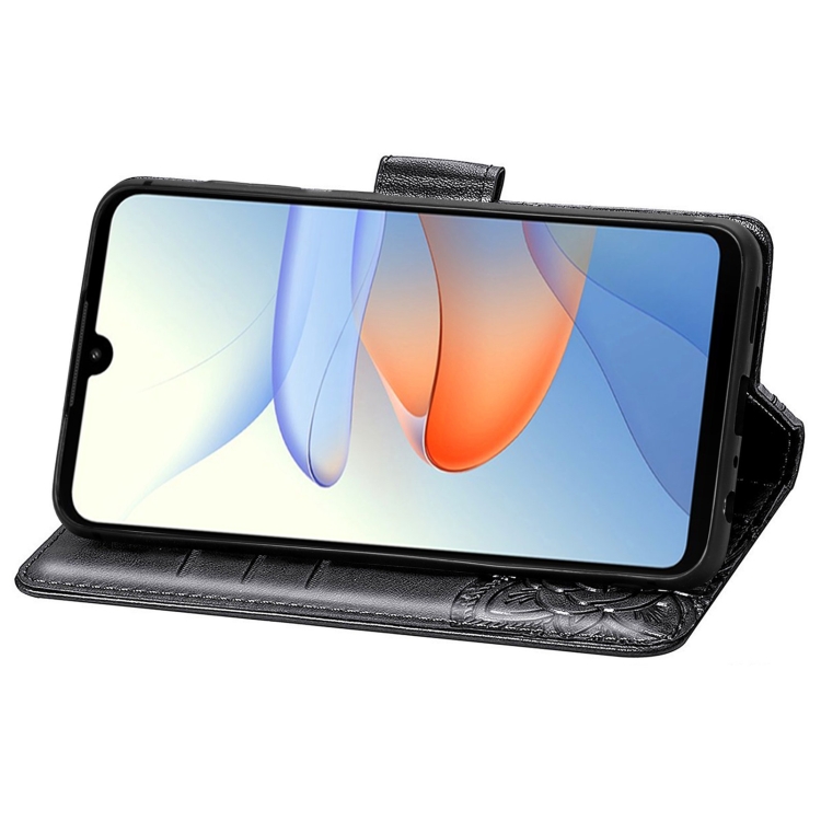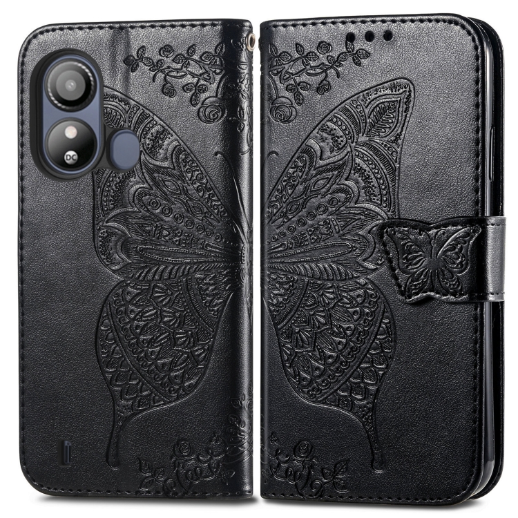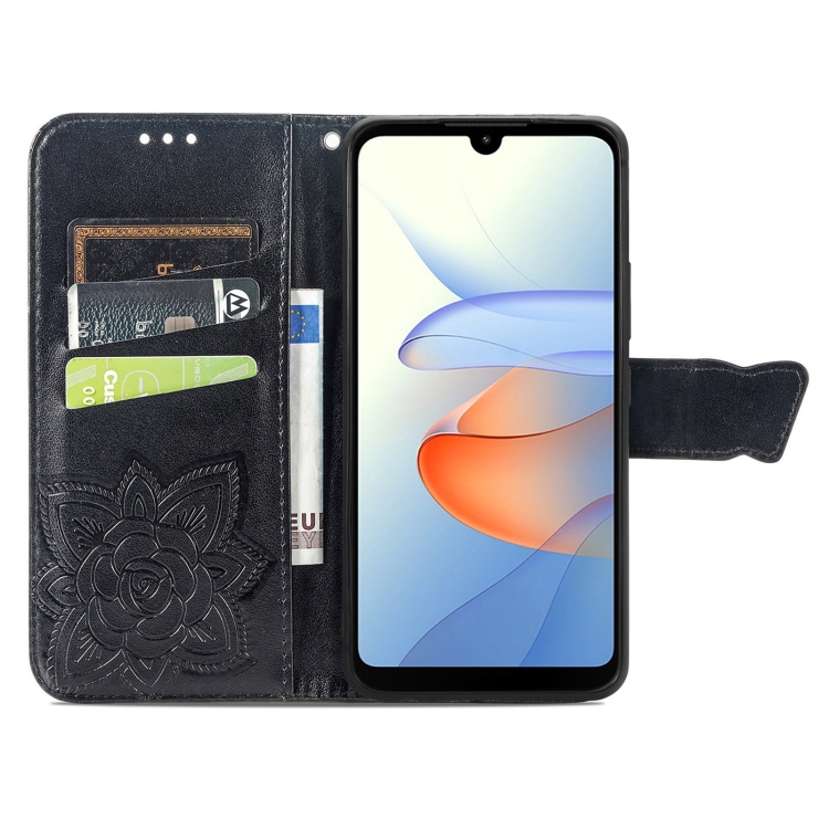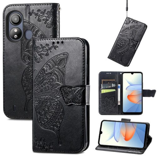 Funda para ZTE Blade L220 de Cuero con Relieve de Flor y Mariposa (Negro)