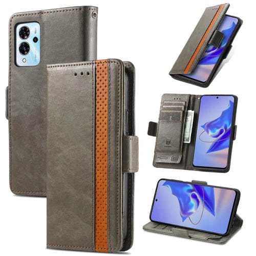 Funda de Cuero para ZTE Blade V40 Pro Caseneo Splicing Dual Magnetic Hebilla (Gris)