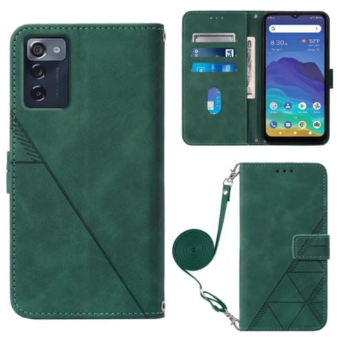Funda de Cuero para ZTE Consumer Cellular Zmax 5G Crossbody con Tapa En Relieve (Verde Oscuro)