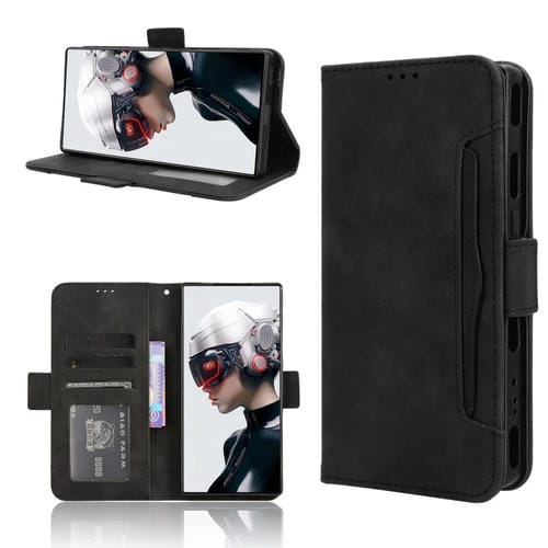 Funda de Cuero para ZTE Nubia Red Magic 9 Pro+ con Ranuras para Tarjetas y Textura Skin Feel Calf (Negro)