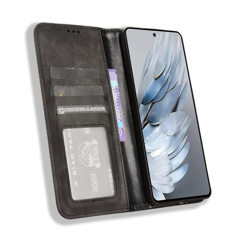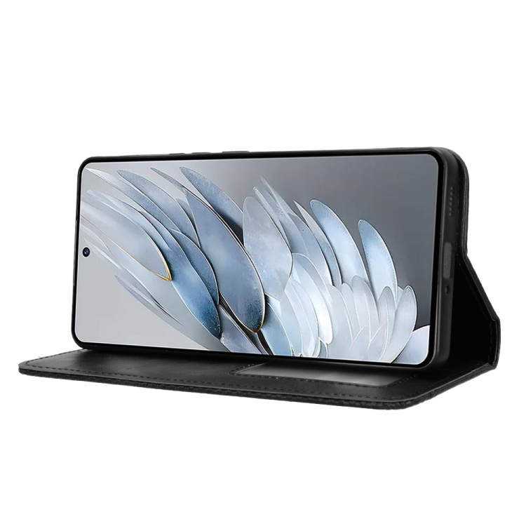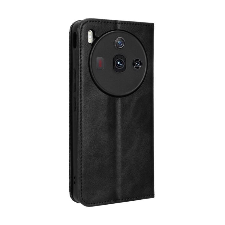 Funda para ZTE Nubia Z50S Pro de Cuero con Textura Retro y Hebilla Magnética (Negro)