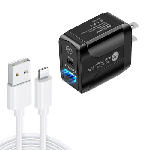 Cable Usb-C + QC3.0 Doble Puerto Usb con Cable de Datos Usb a 8 Pin (Negro)