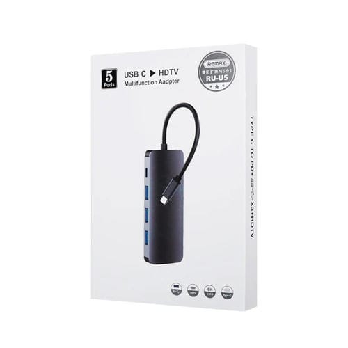 - 1x Hub Station Tipo-C USB-C 5 en 1 Remax RU-U5 Multifunción (Gris Oscuro)