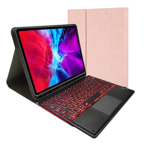 Funda para iPad Pro 11 Rk11T Bluetooth Backlight TPU Cuero Flip Horizontal con Soporte y Ranura de Bolígrafo (Oro Rosa)