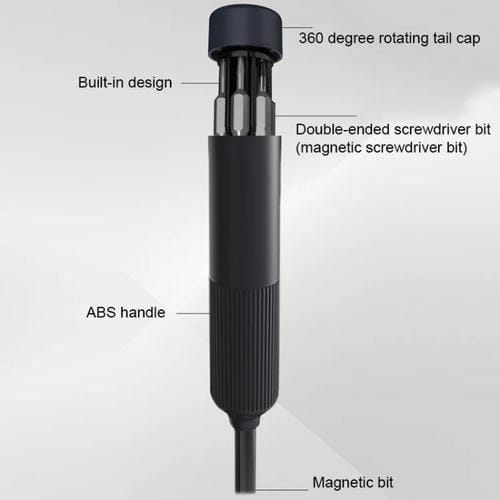 - Contiene 27 puntas de doble punta: PH000, PH00, PH1, PH0, T3, T4, T5, T6H, T7H, T8H, T9H, T10H, -1,5, -3,5, Triángulo 2,3, Triángulo 2,7, Estrella 0,8, Estrella 1,2, Y000, Y1, H1,5, H2,0, U2,3, U2,6, SIM, MID; Tapa Trasera giratoria 360°, diseño de compartimento de almacenamiento oculto