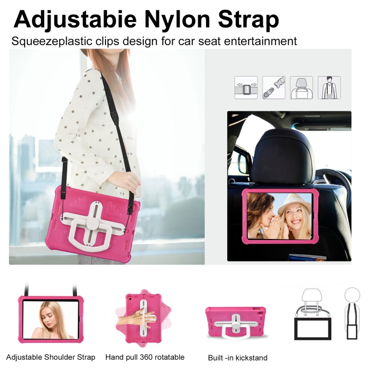 Tablet Case Shield 360 Manija de Rotación Eva a Prueba de Golpes para iPad 10.2 2019/2020/2021/Pro 10.5 2017/Air 2019 (Rosa Rojo Beige)
