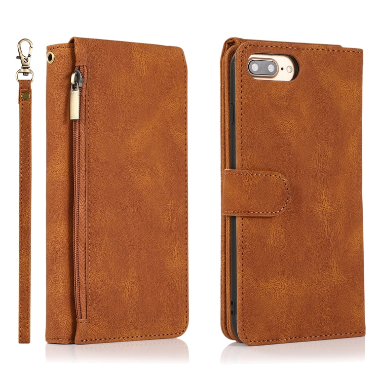 Funda Cuero Skin-Feel Crazy Horse Wallet Bag con Tapa Horizontal Soporte y Ranuras para Tarjetas iPhone 6 Plus (Marrón)