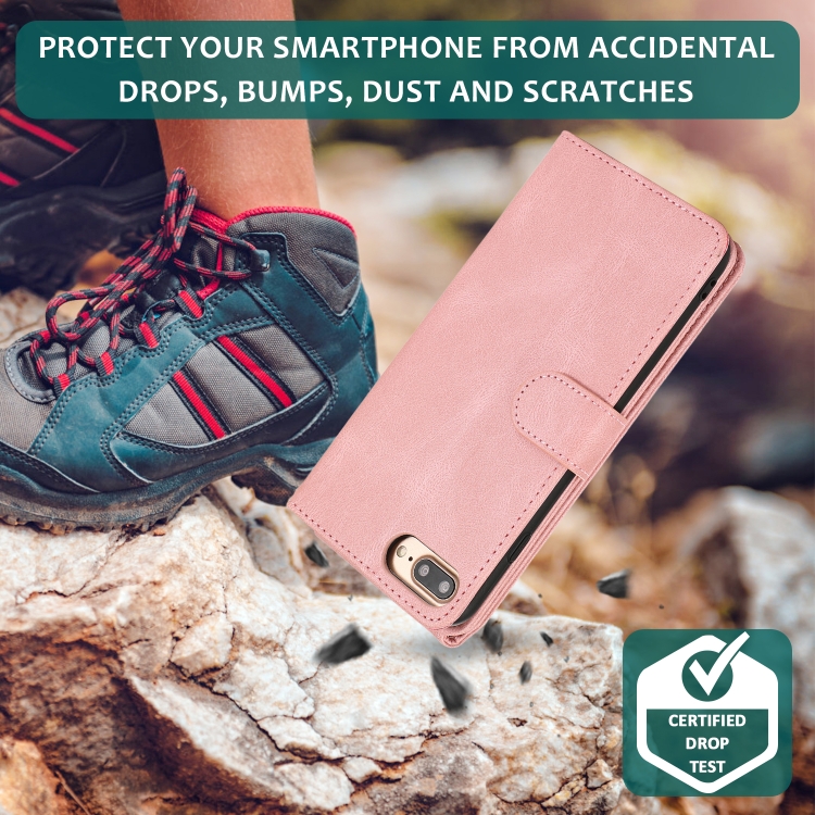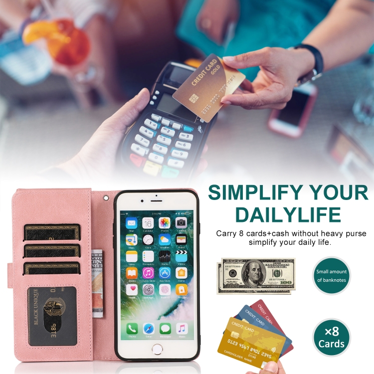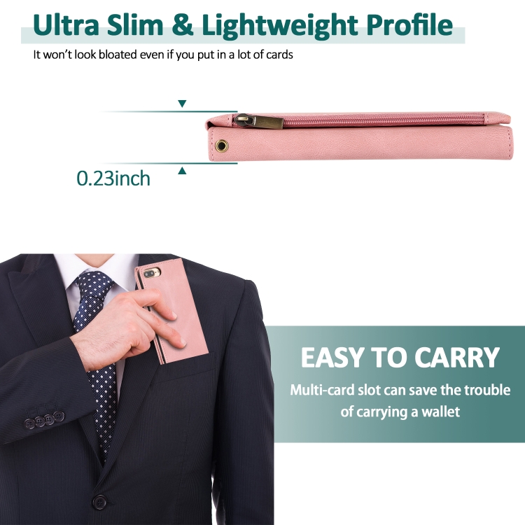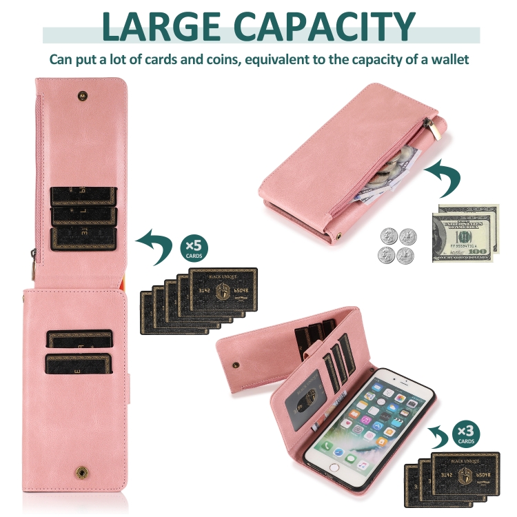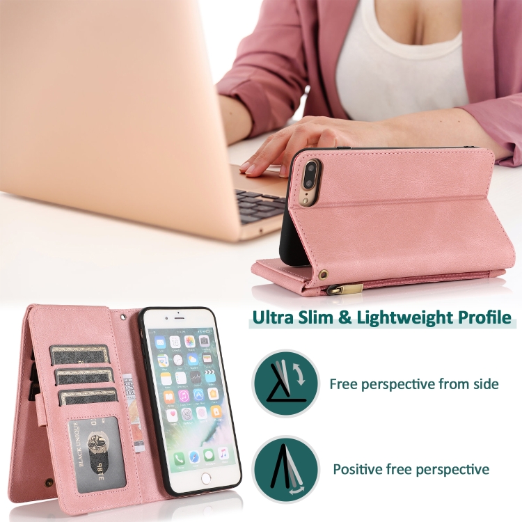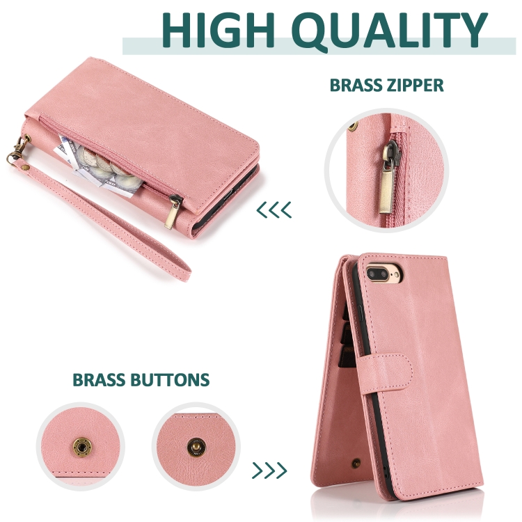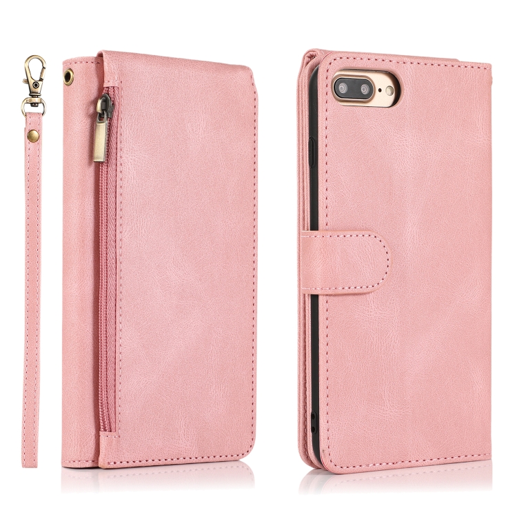 Funda de Cuero Skin-Feel Crazy Horse Texture Zipper Wallet Bag para iPhone 6 Plus con Tapa Horizontal Soporte Ranuras y Cordón (Oro Rosa)