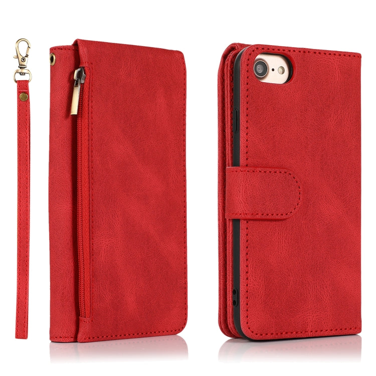 Funda Cuero Skin-Feel Crazy Horse Wallet Bag iPhone 6 con Tapa Horizontal Soporte Ranuras y Cordón (Rojo)