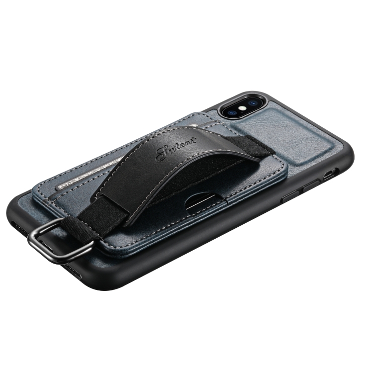 Funda para iPhone X / Xs Suteni H13 Card Wallet Wrist Strap Holder PU Azul
