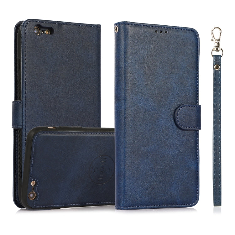 Funda de Cuero Textura de Pantorrilla 2 en 1 para iPhone 6S Plus / 6 Plus con Soporte y Ranuras (Azul)