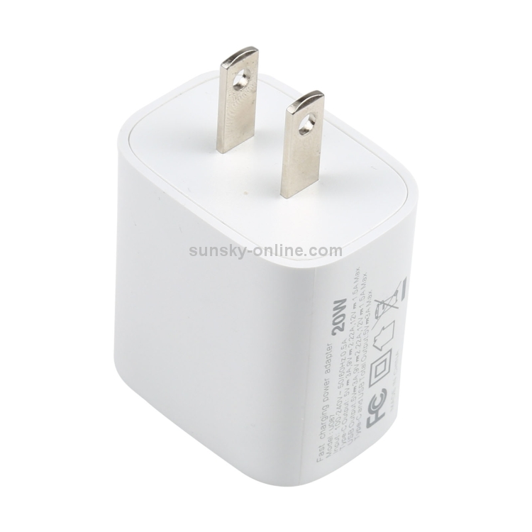 Cargador de viaje U087 20W Usb-C + Puertos Usb carga rápida (Blanco)