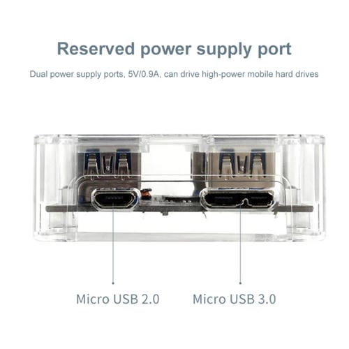 • Velocidad de transmisión de datos de hasta 5 Gbps; tamaño compacto de 57x57x20 mm; voltaje de Carga de 5V/0.9A; incluye Puerto de fuente de Alimentación para Soporte de Discos duros externos de alta potencia