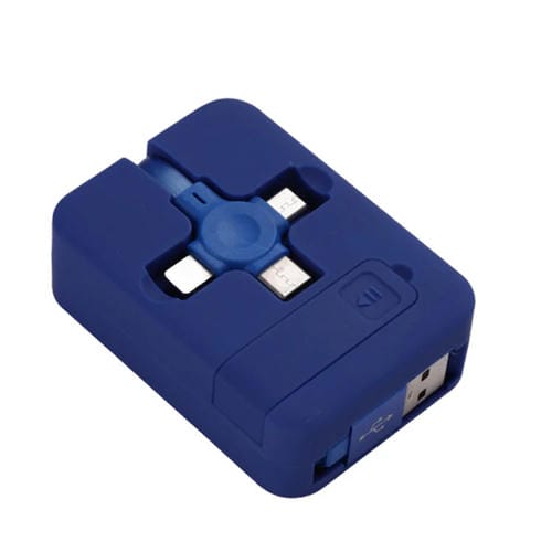 Cable 3 en 1 USB A 8 Pin + Micro USB + USB-C Macarrón con Ranura y Soporte de Almacenamiento (Azul)