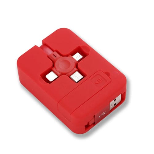 Cable de datos 3 en 1 Macaron USB A 8 Pin + Micro USB + USB-C telescópico con soporte (Rojo)