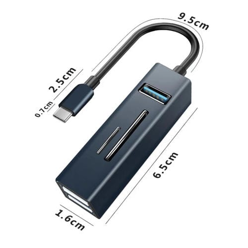 - 1x Adaptador Hub 5 en 1 USB-C / Type-C a USB 3.0 con Lector de Tarjetas SD y TF (Azul)