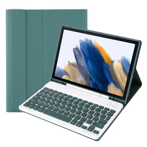 A08B Étui en cuir pour clavier Bluetooth couleur bonbon avec emplacement pour stylo pour Samsung Galaxy Tab A8 10.5 2021 SM-X200 / SM-X205 (vert foncé)