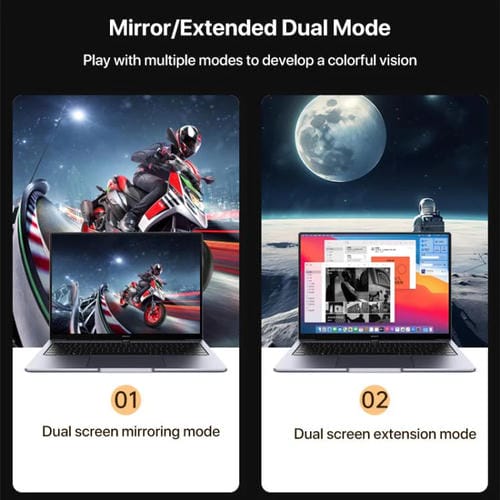- Compatible con dispositivos con puerto USB Tipo-C y pantallas con entrada HDMI 2.1