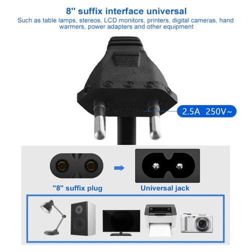 Es compatible con la mayoría de los Portátiles que utilizan enchufes europeos de dos clavijas estándar. -