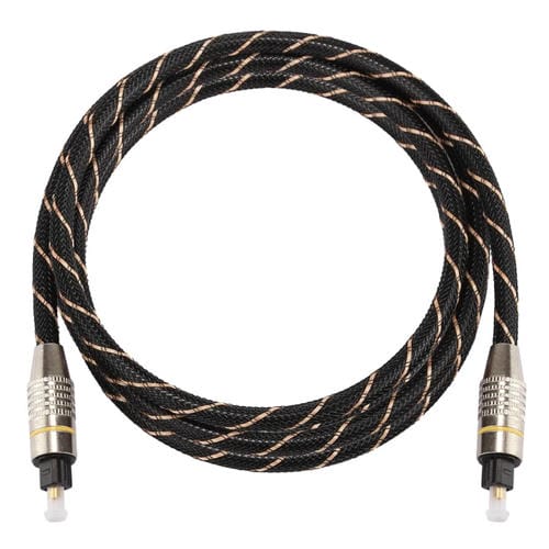 - 1x Cable de Audio Óptico Digital Macho a Macho Toslink Línea Neta Tejida con Cabeza Metálica Chapada en Oro 1,5 m OD6,0 mm
