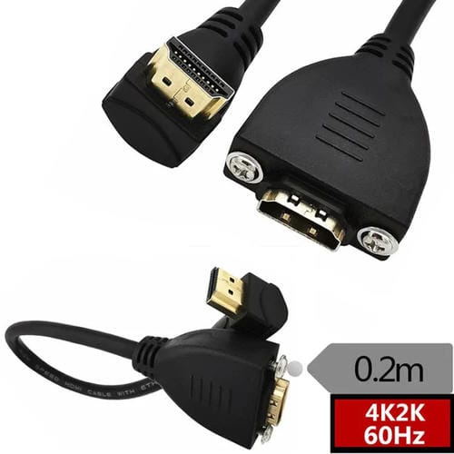 Cable de extensión fijo HDMI macho a hembra, versión 2.0, 4K 60 Hz, con orificios para tornillos, longitud: 0,2 m (codo inferior)