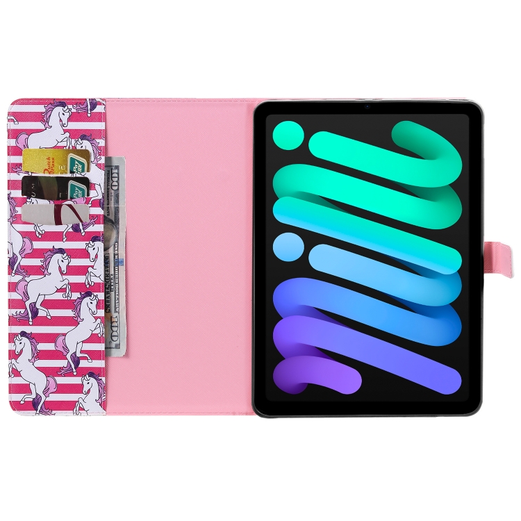 Caja de Tableta de Cuero Horizontal de Dibujo de Colores para iPad Mini 6 (Caballo)