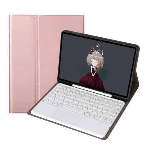 - 1x Case de Cuero Bluetooth con Teclado y Panel Táctil Lambske para Samsung Galaxy Tab A8 10.5 (2021) (Oro de Rosa)