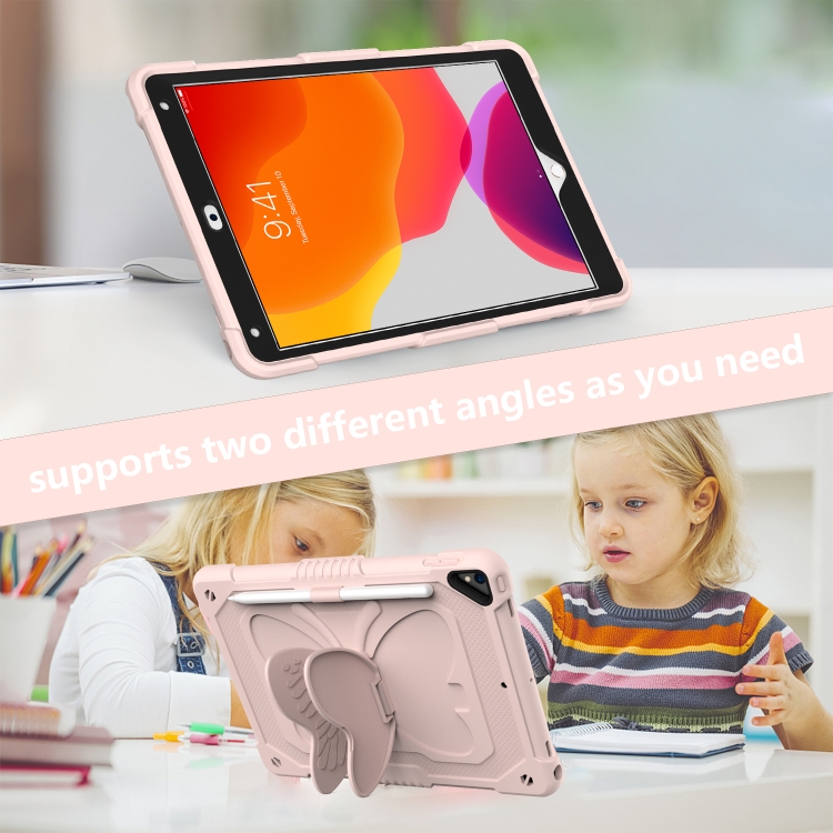 Funda Protectora para iPad 10.2 2021 2020 2019 y Air 3 10.5 PC + Silicona Anti-Gota con Soporte y Ranura (Rosa)