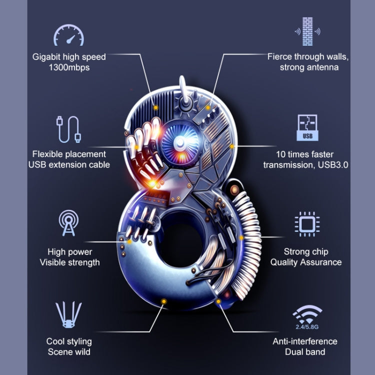 Adaptador de Red USB WIFI Compaste Cf-Wu785Ac 1300 Mbps Doble Banda con 4 Antenas