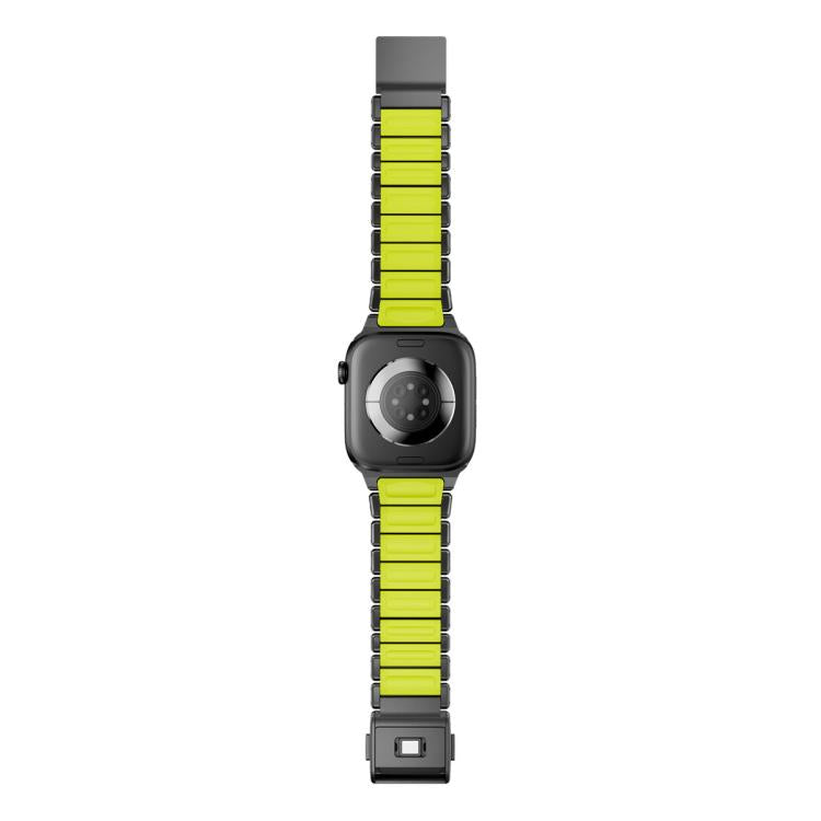 Correa de acero inoxidable con hebilla Norman magnética integrada de una sola cuenta para Apple Watch de 46 mm / 49 mm / 45 mm / 44 mm (negro/verde).