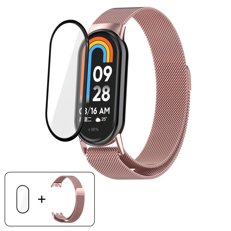 Correa de acero inoxidable milanesa con película curva 3D para Xiaomi Smart Band 9/9 NFC (rosa)