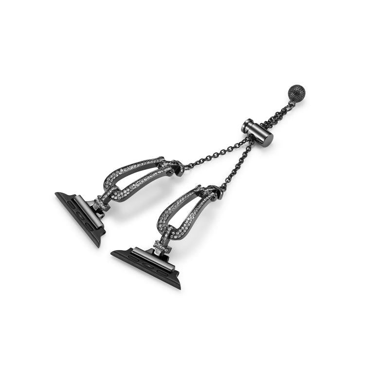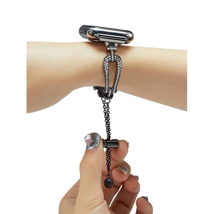 Correa de aleación de zinc con diamantes en forma de U para Apple Watch de 46 mm, 49 mm, 45 mm y 44 mm (negra)