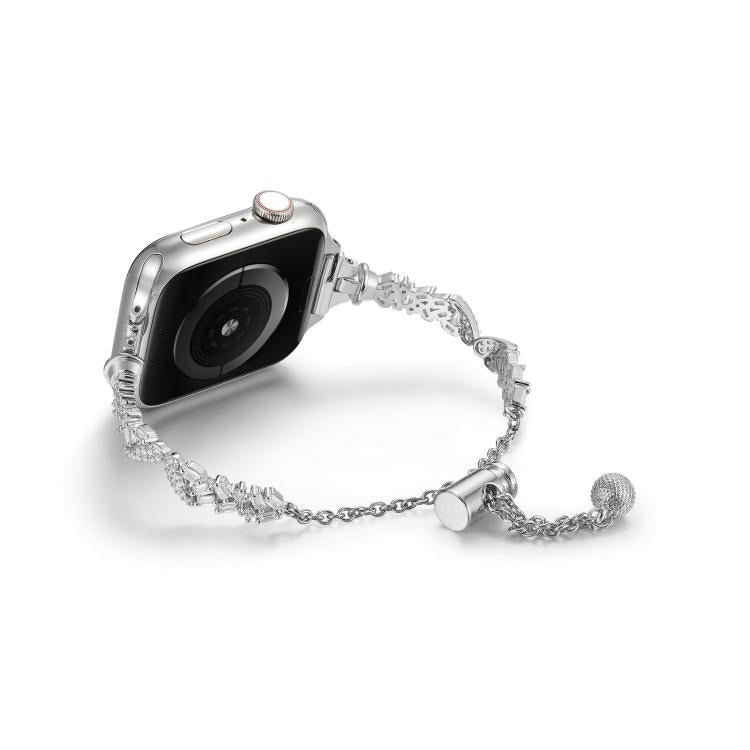 Correa de aleación de zinc con diamantes triturados Wings para Apple Watch de 42 mm, 41 mm, 40 mm y 38 mm (plateada)